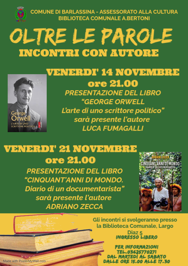 Gli incontri si svolgeranno presso la Biblioteca Comunale, Largo Diaz 5