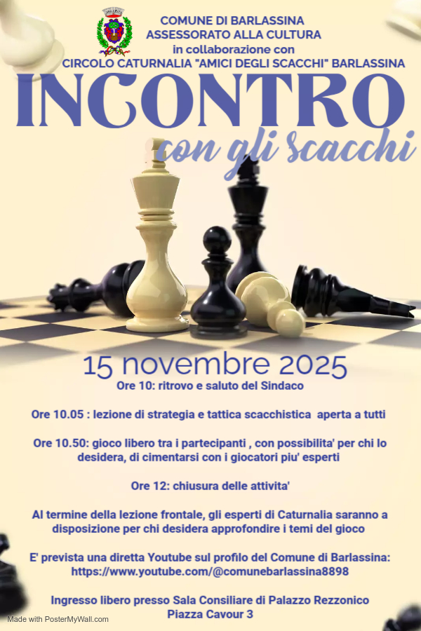COMUNE DI BARLASSINA, ASSESSORATO ALLA CULTURA in collaborazione con CIRCOLO CATURNALIA "AMICI DEGLI SCACCHI BARLASSINA"